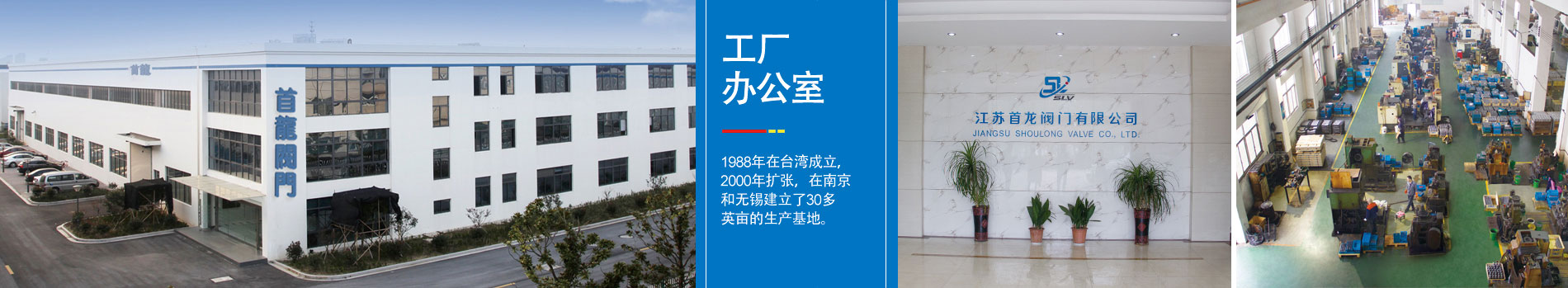 江蘇首龍閥門有限公司1988年在臺(tái)灣成立,是一家高品質(zhì)的閥門制造商,主要產(chǎn)品以球閥、蝶閥、閘閥、截止閥、逆止閥、Y型過濾器、調(diào)節(jié)閥、氣動(dòng)閥、電動(dòng)閥等,可提供多種尺寸和材質(zhì)。這些閥門廣泛應(yīng)用於石油、化工、電站、印染、食品、制藥、冶金、給排水系統(tǒng)、市政工程等行業(yè)。2000年公司進(jìn)行了擴(kuò)建,在中國(guó)大陸華南區(qū)成立首龍閥門有限公司,以臺(tái)灣產(chǎn)品結(jié)構(gòu)為主的大陸工廠,投資1000萬美元,新建了一座面積約20000平方米的廠房,成立了第二個(gè)工廠,年生產(chǎn)力達(dá)到2000噸以上,年銷售量達(dá)到2000噸。公司還通過了ISO9001-2000,TRD100,CE,API6D,API607,DNV和CNS正字標(biāo)記等證書。